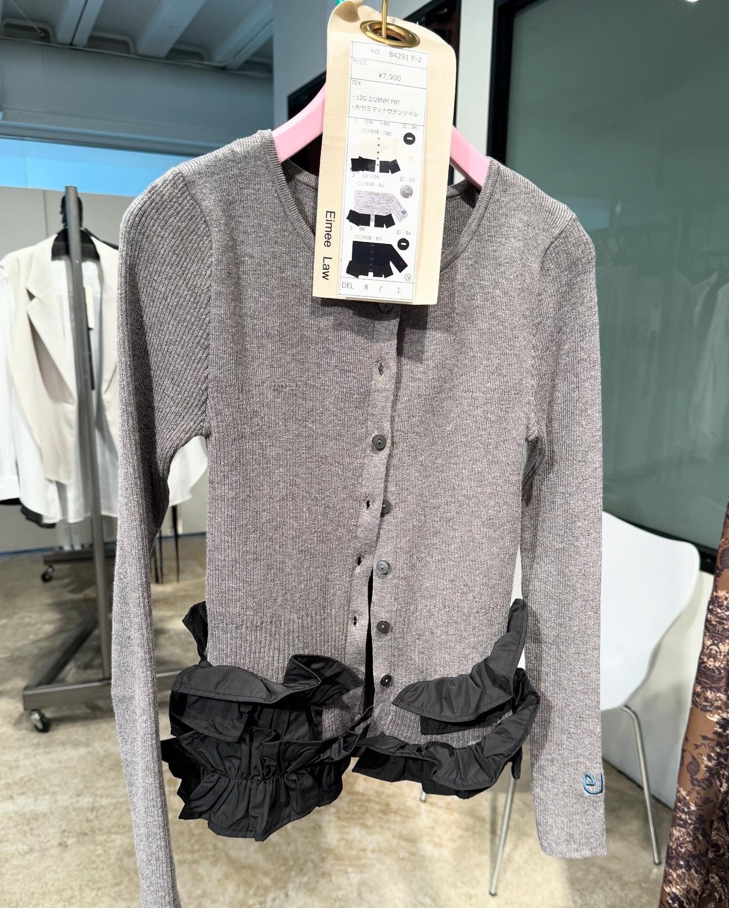 エイミーロウ eimeelaw Eimee Law ギャザーフリルヘムリブニットカーデ