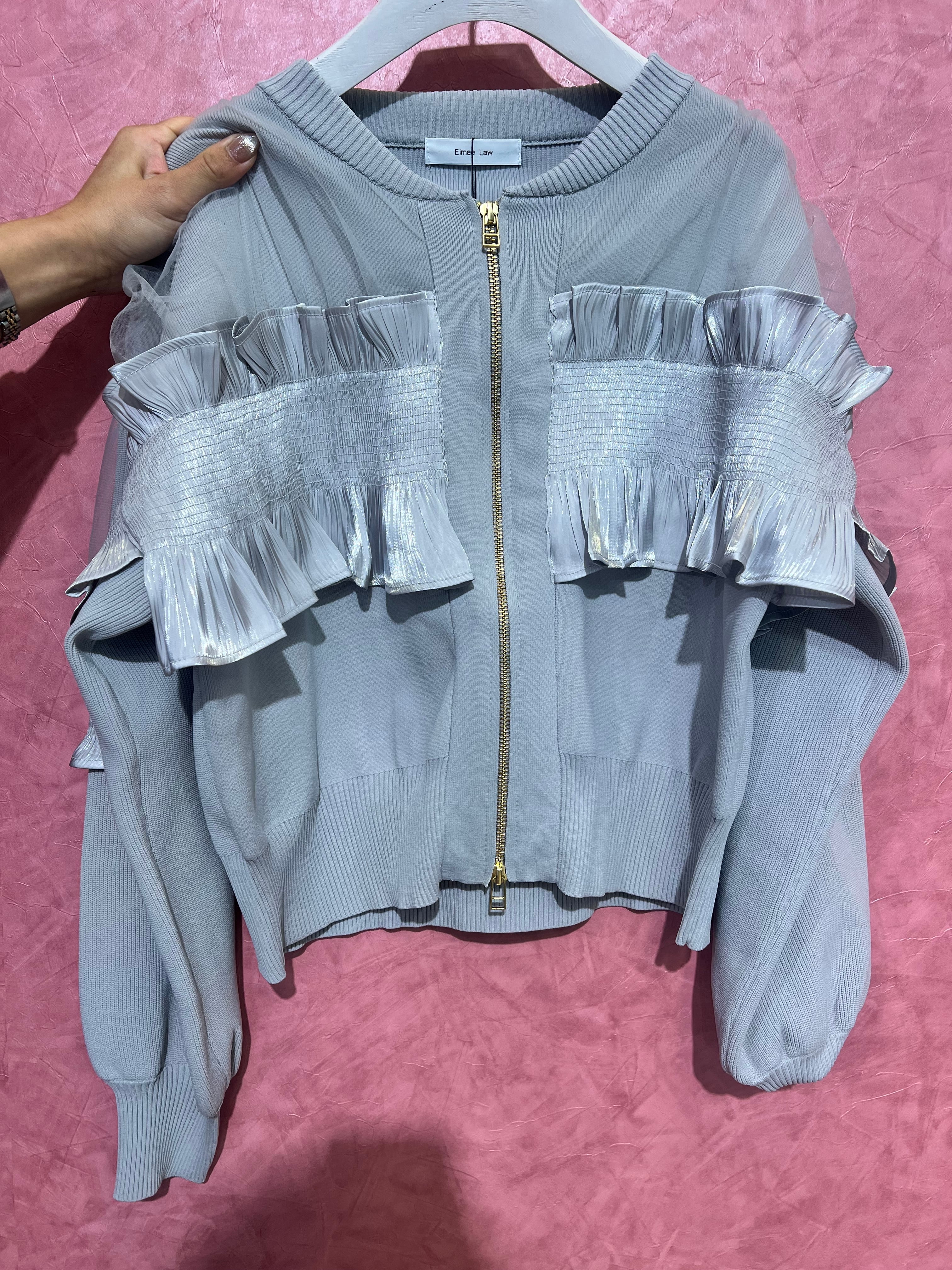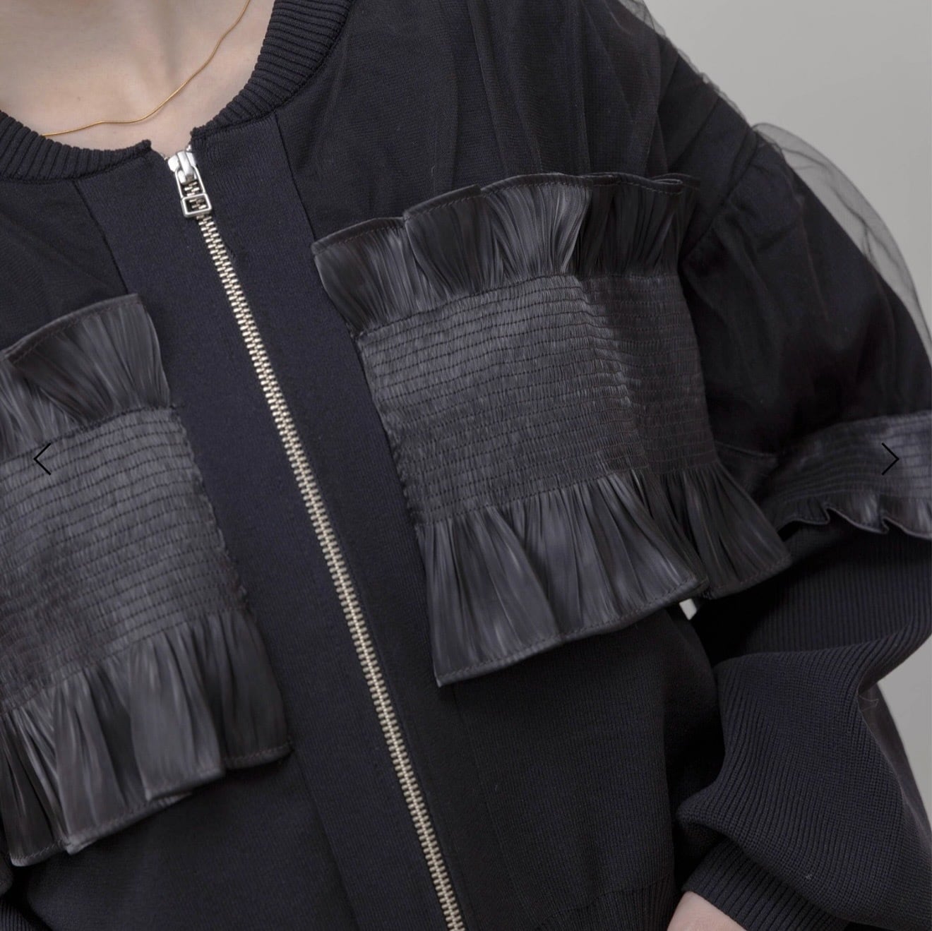 エイミーロウ eimeelaw Eimee Law シャーリングフリルニットブルゾン