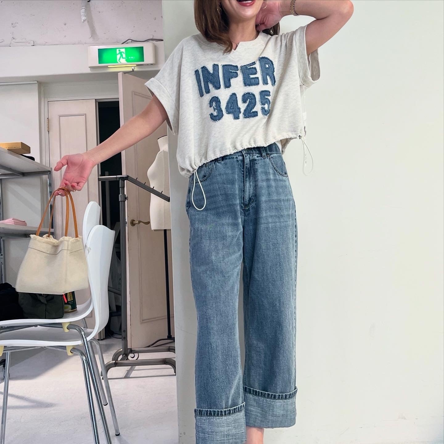 アヤン ayane デニムロゴパッチショート丈PO Delivery