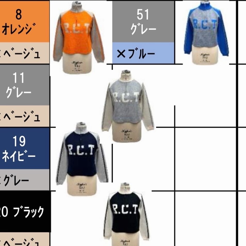 color 8 オレンジ×ベージュ、11 グレー×ベージュ、19 ネイビー×グレー、20 ブラック×ベージュ、51 グレー×ブルー