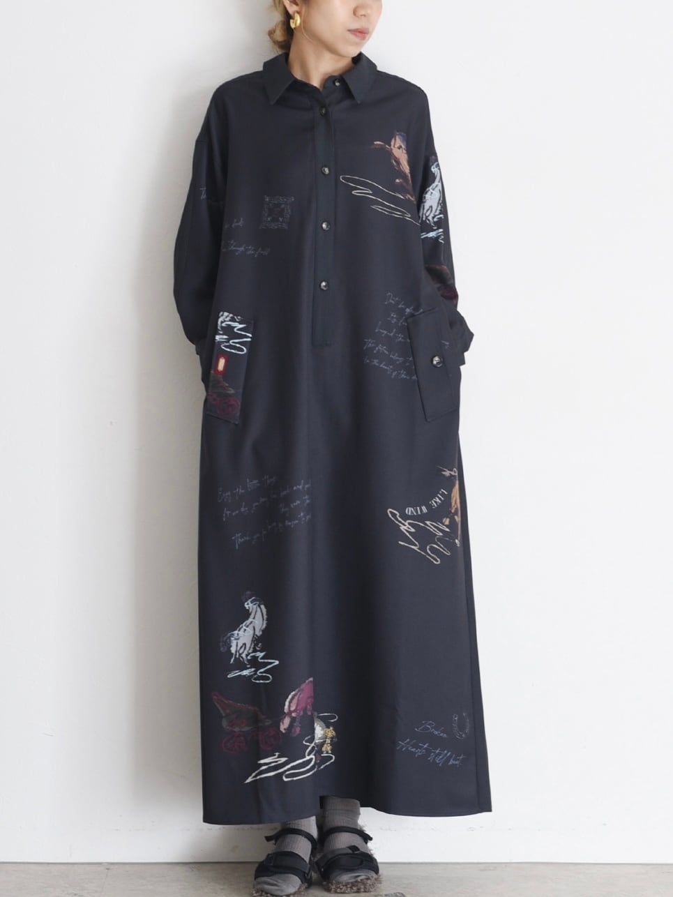 エイミーロウ Eimee Law テキスト馬柄ptベルテットシャツOP
