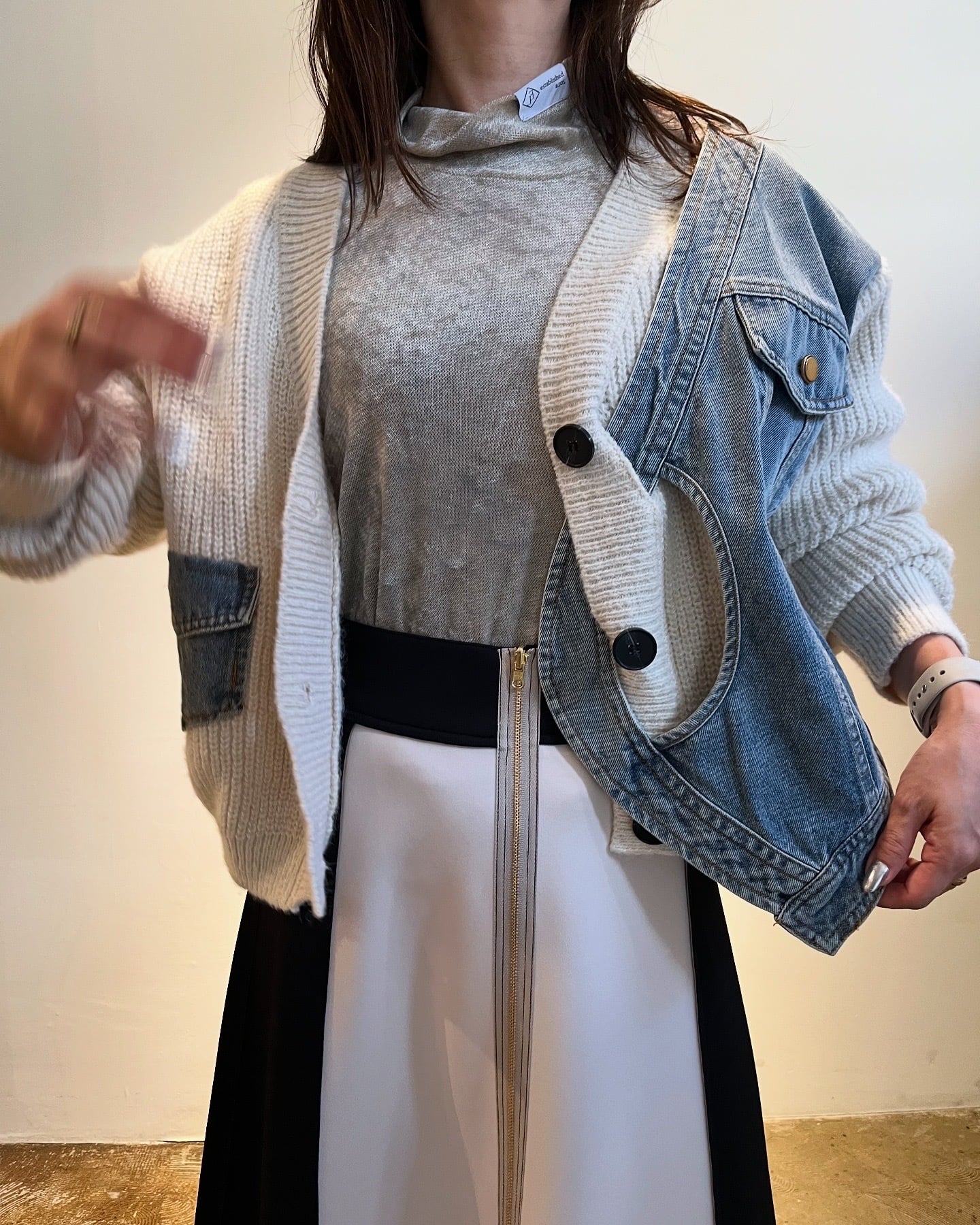 エイミーロウ Eimee Law デニムドッキングニットカーデ