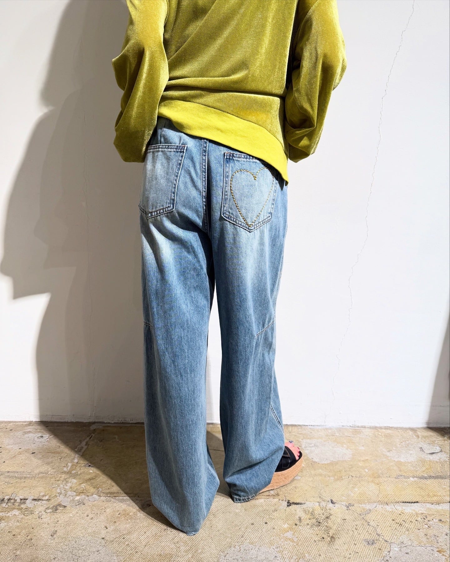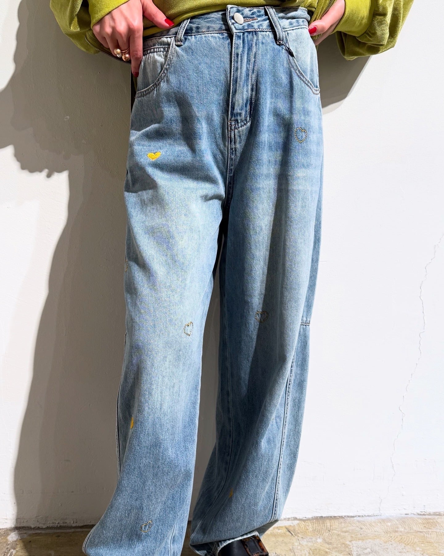 ポリーヌブロー 刺繍ハートワイドデニムパンツ