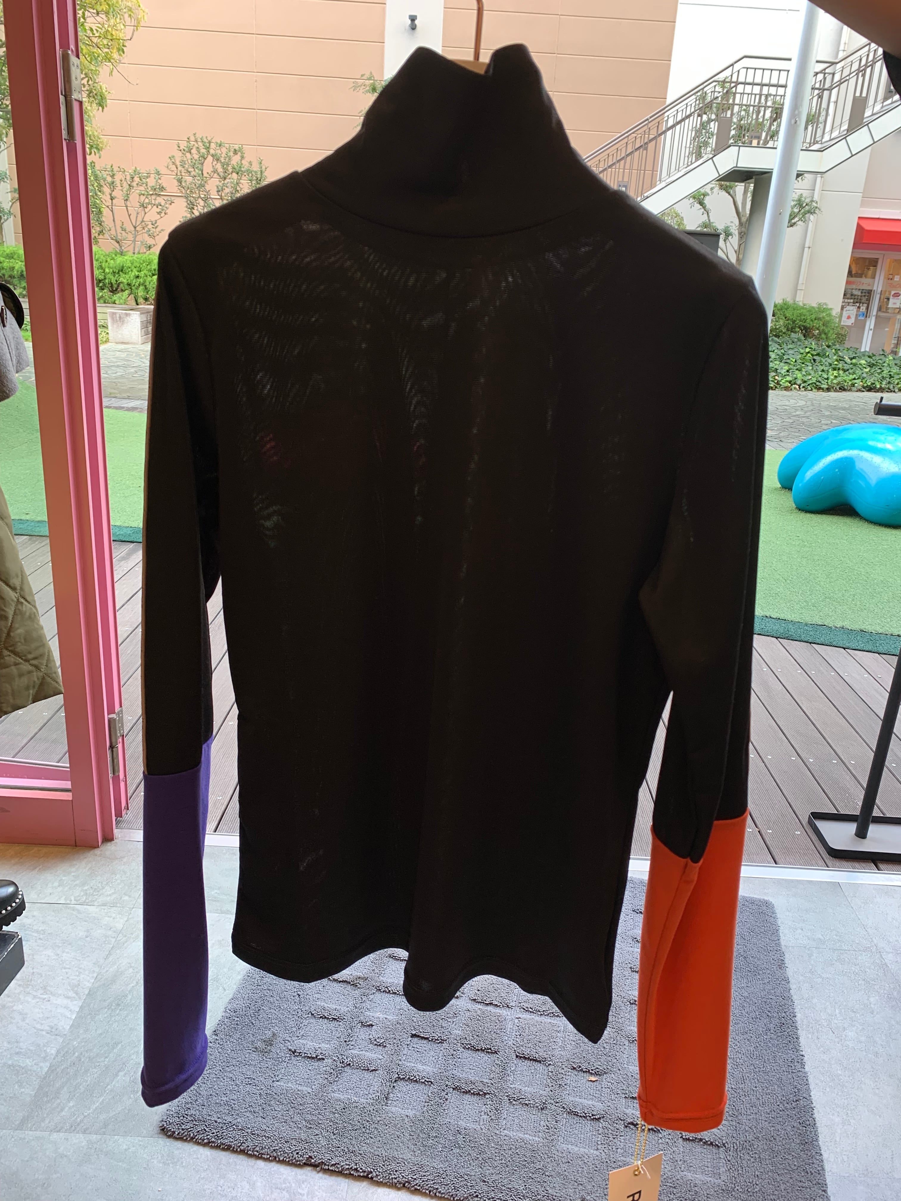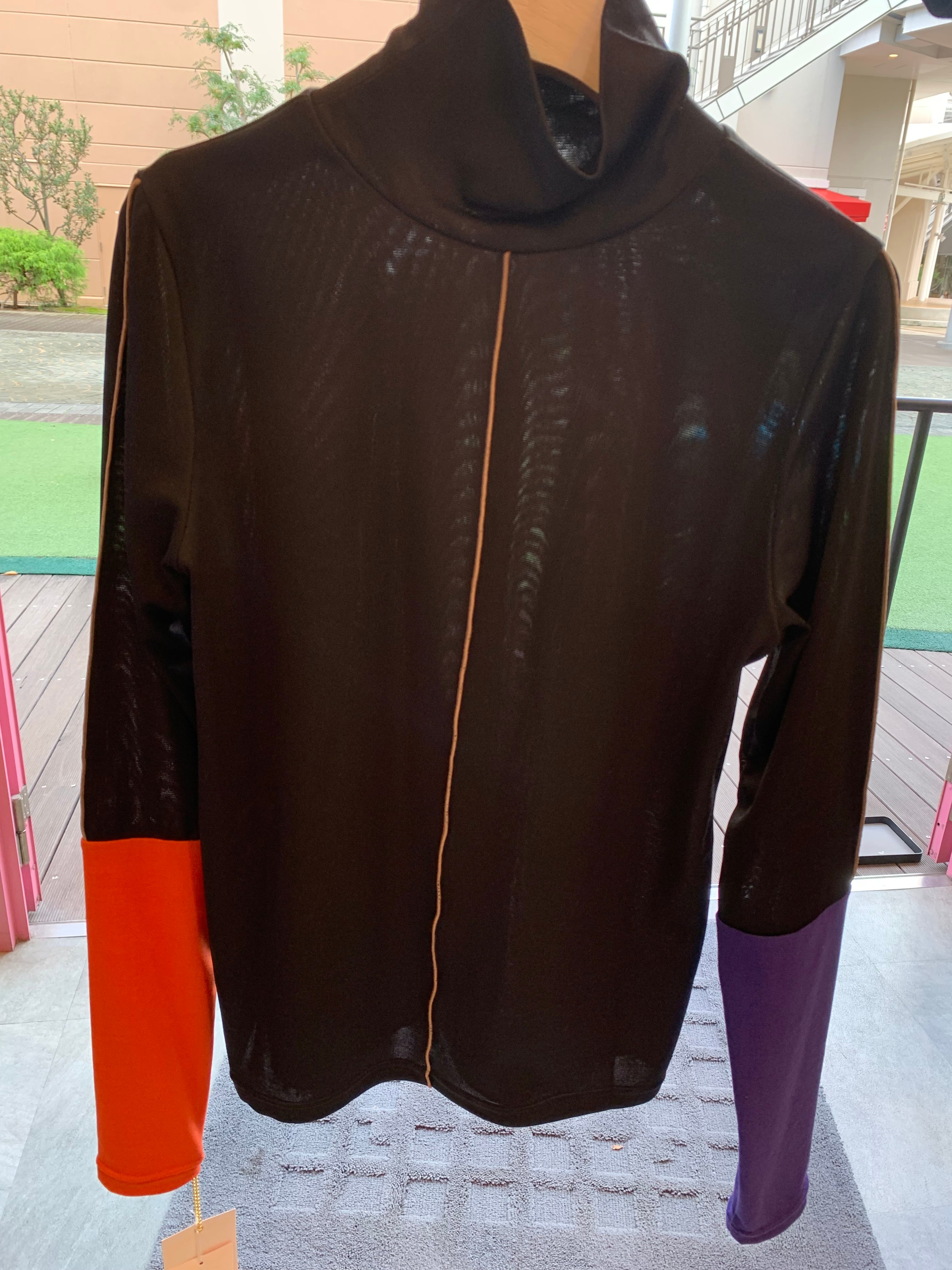 2025AutumnWinter #リズレイ #RISLEY #risley オンラインショップにて販売スタート 詳しくはInstagramをご覧ください。バイカラーハイネックカットソー\9800+tax オレンジ、イエロー SIZE F