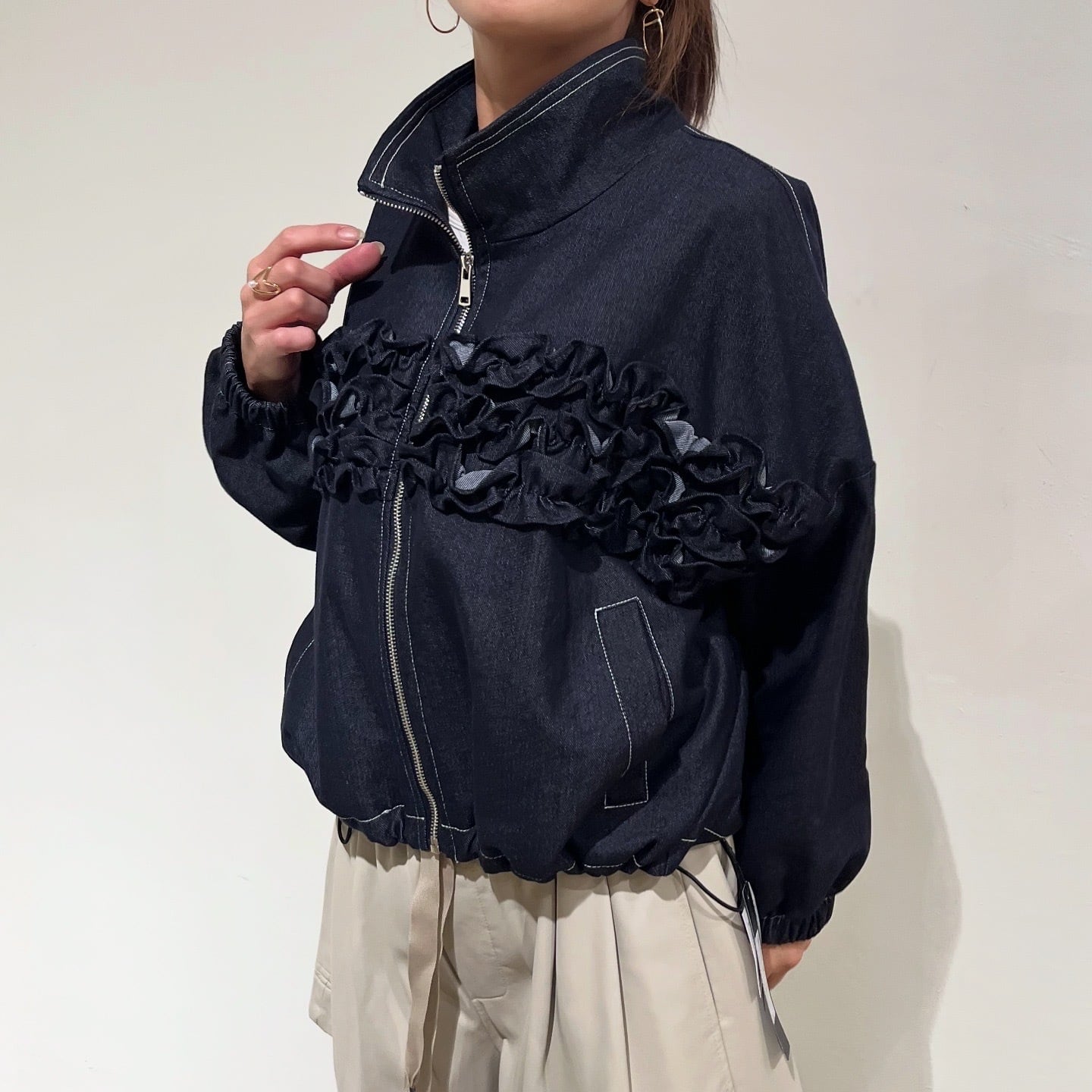 センターフリルデニムブルゾン