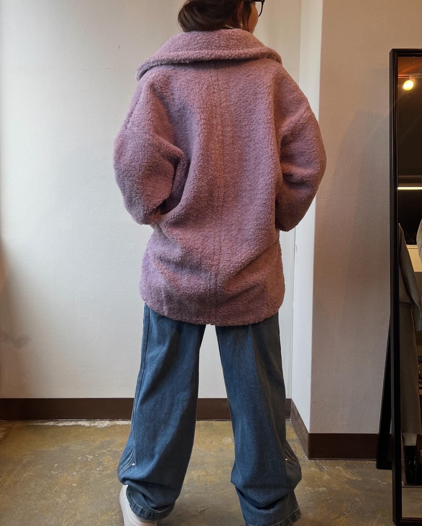 暖かく柔らかなボア素材をダブル前で仕立てたコート。ボリュームあるボアが今年らしく羽織るだけでトレンド感のあるスタイルに。ヒップが隠れる丈感でパンツにもスカートにも合わせやすい。カジュアルながら上品さを兼ね備え大人のデイリースタイルを華やかに彩ります。