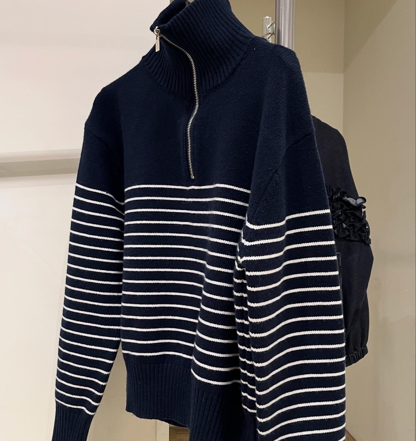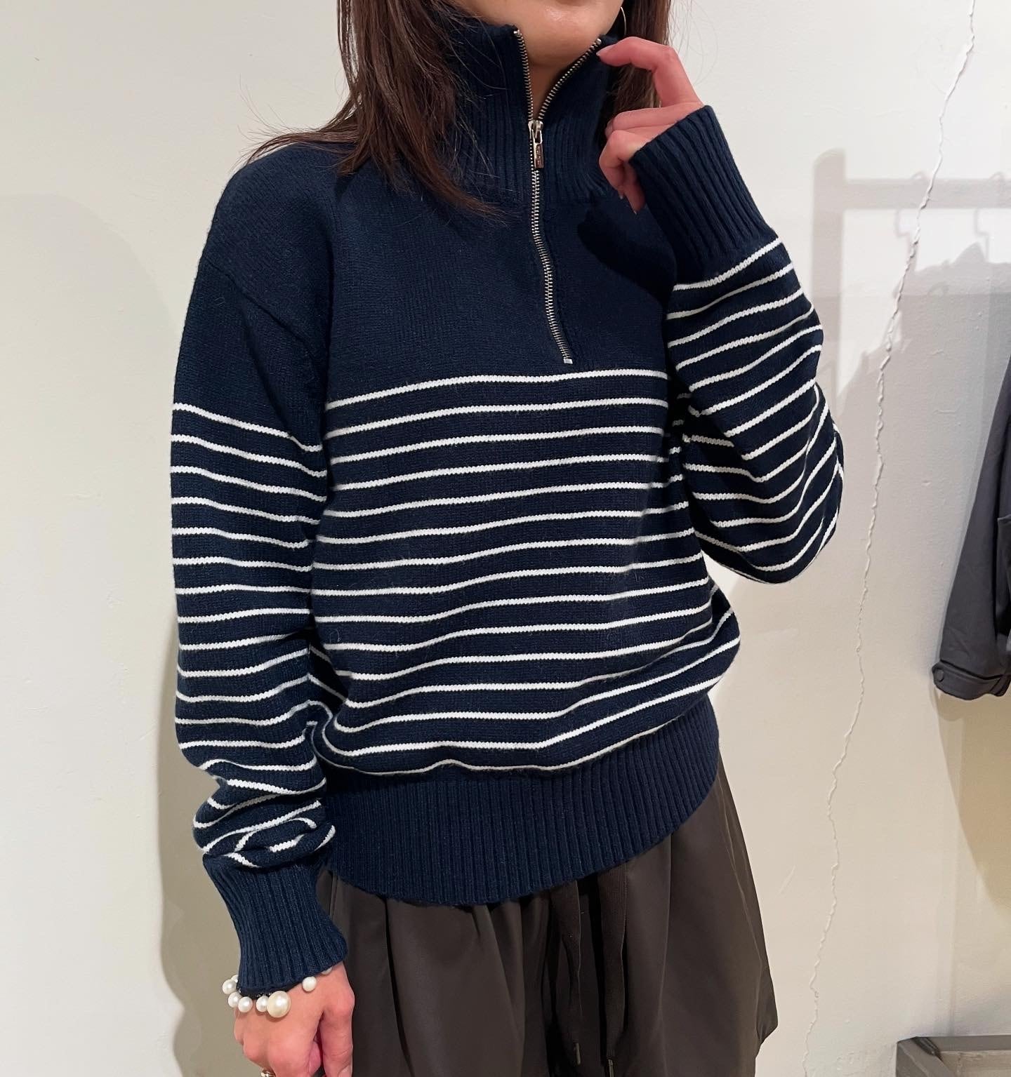 ネイビーハーフZIPボーダーニット
