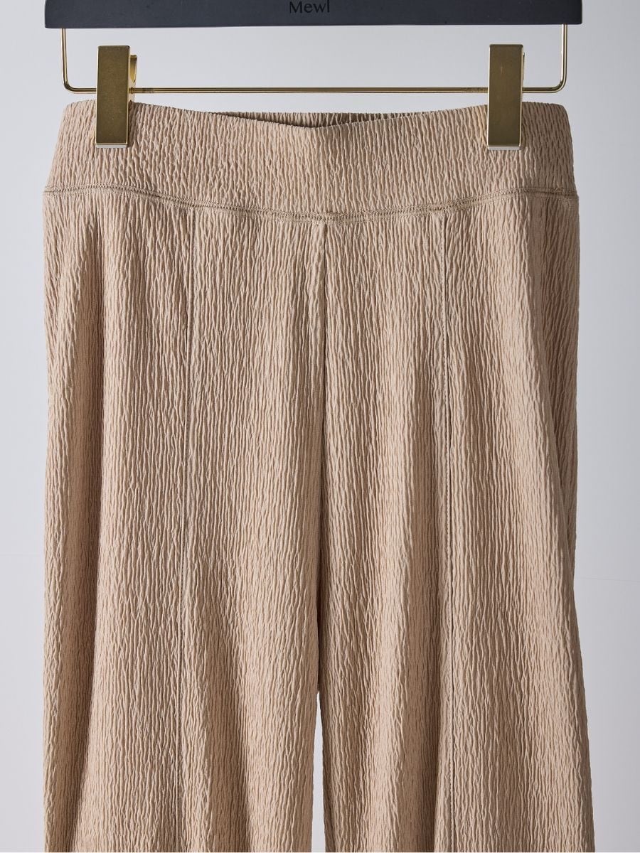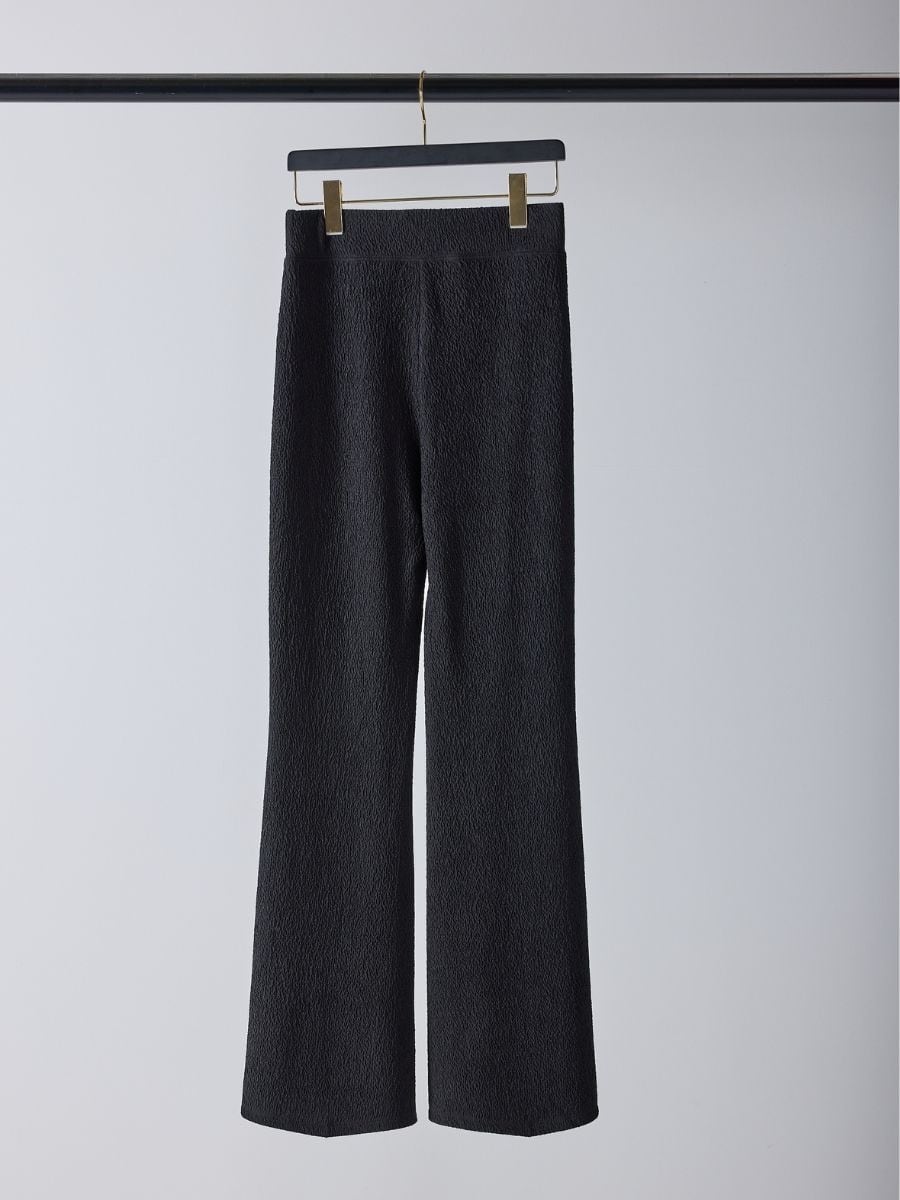 Mewlらしい美脚シルエットを追求した、ふくれジャガード素材のフレアパンツ。