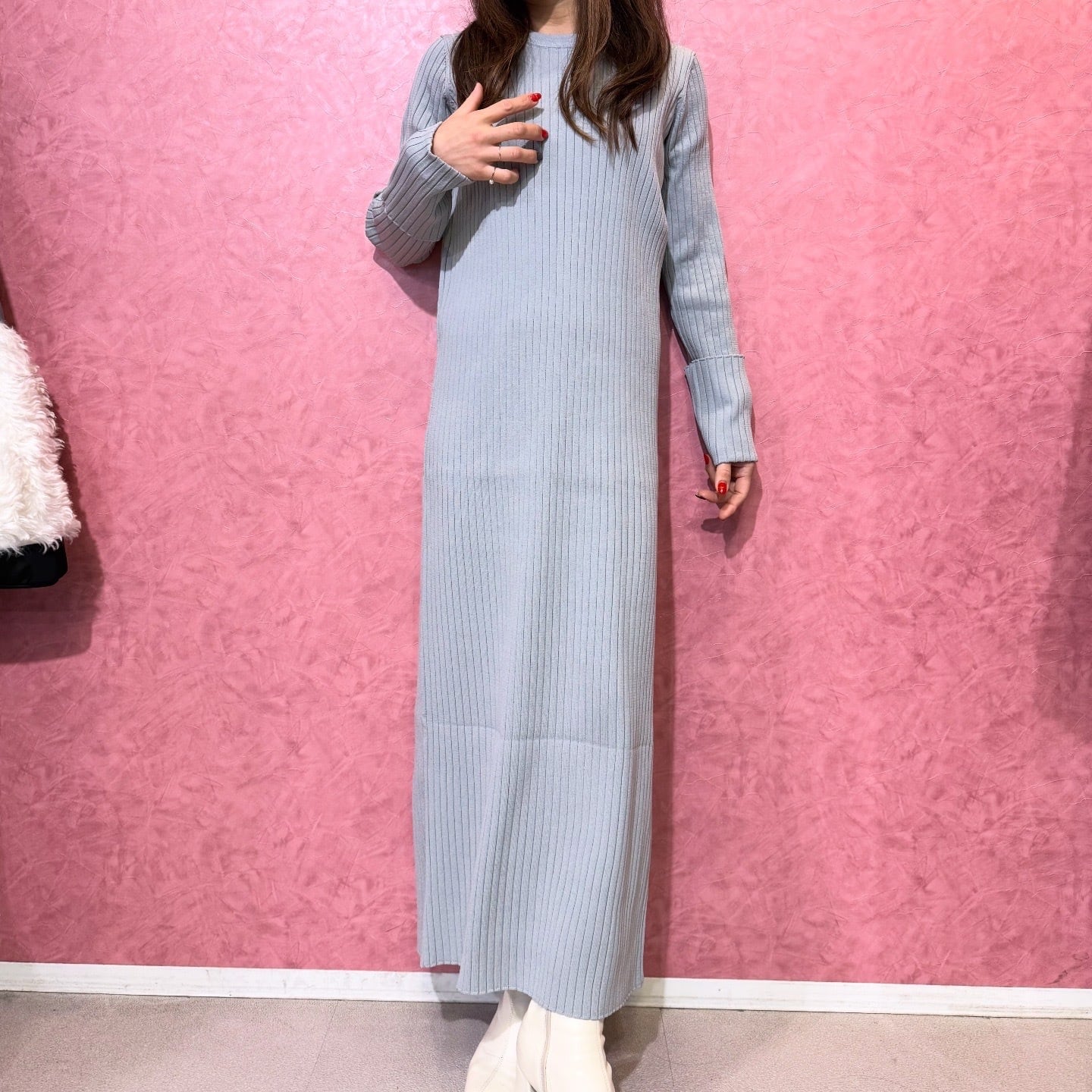 リブニットロングワンピース