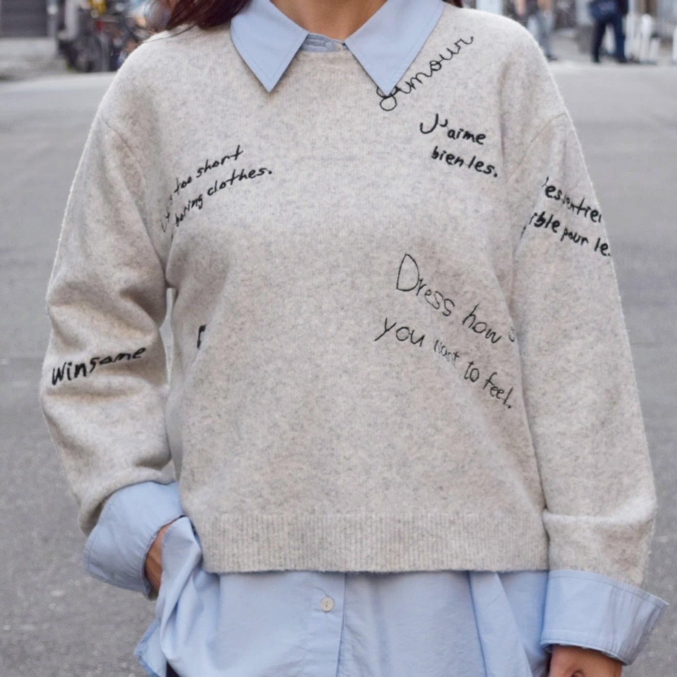 アウターの下からさりげなく刺繍が覗くので、冬のレイヤードにもピッタリ!