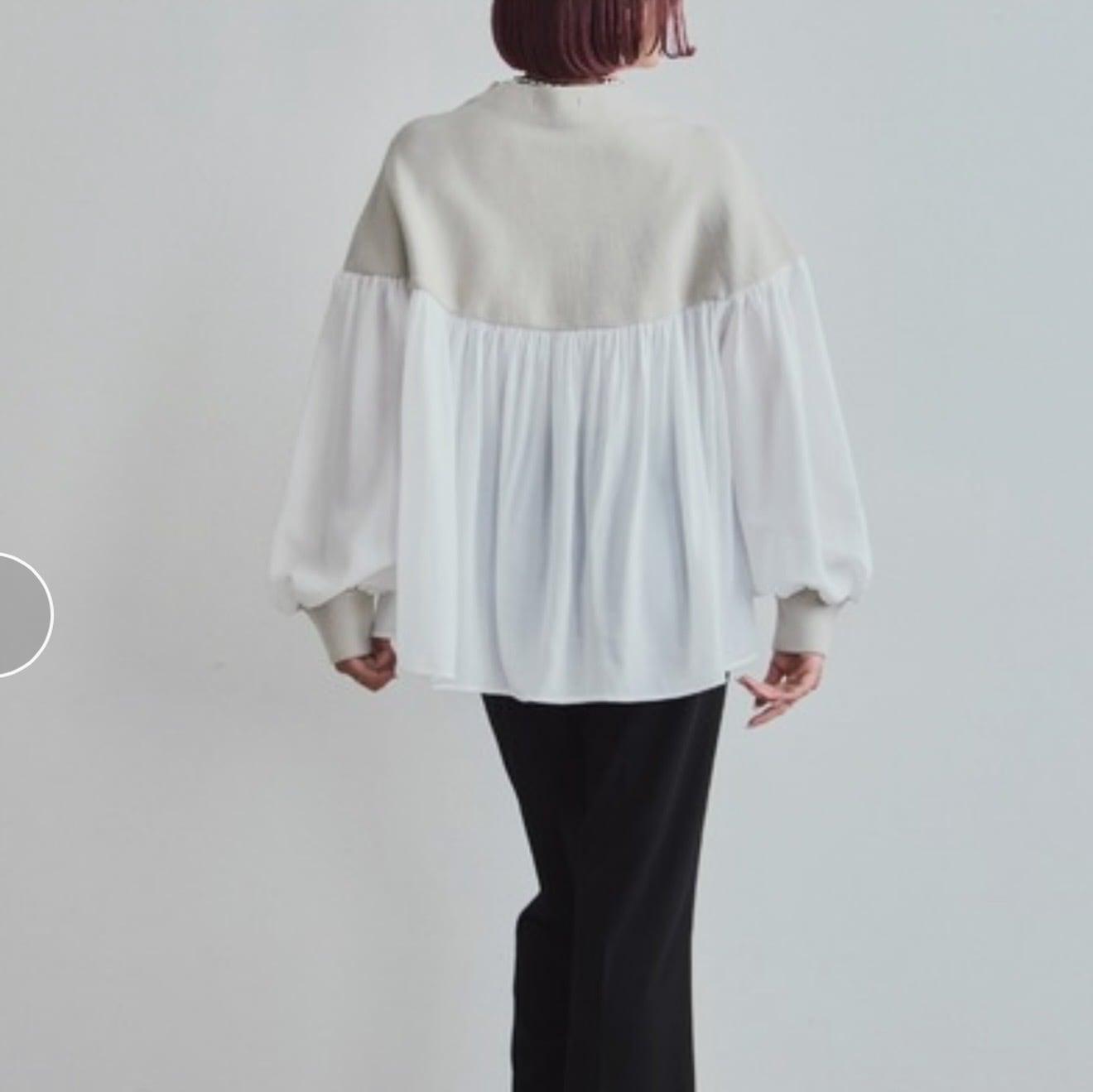 柔らかく揺れ感のある生地とのドッキングで上品な印象に。