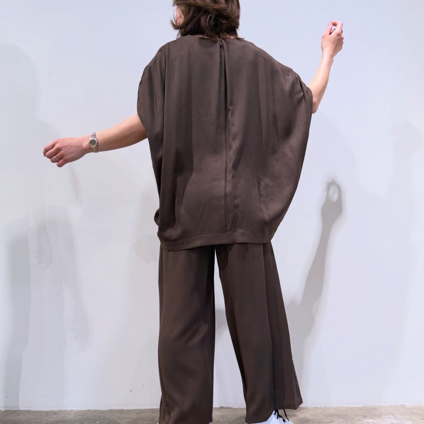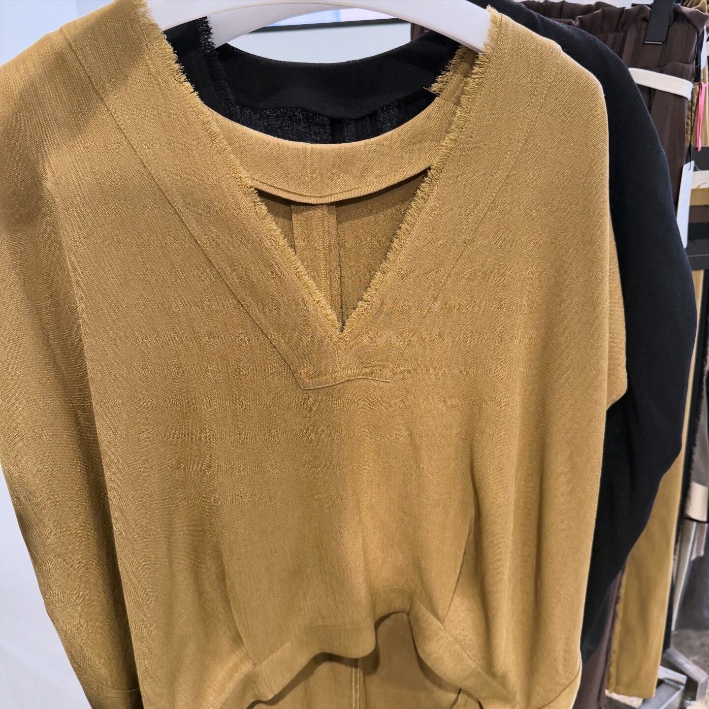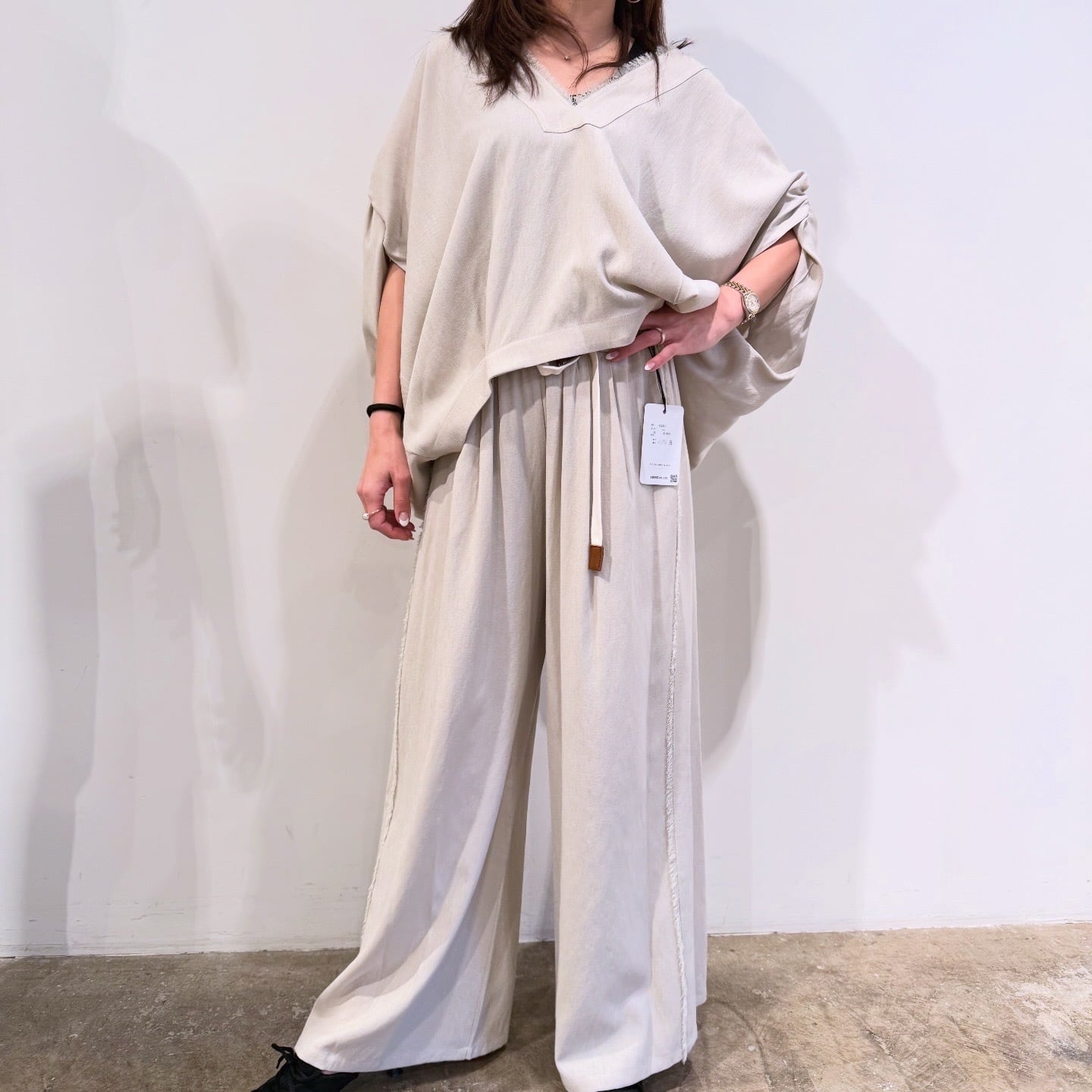 ルギバ lugiva tokyo R/Tスラブ肩ギャザーフリンジノースリーブ