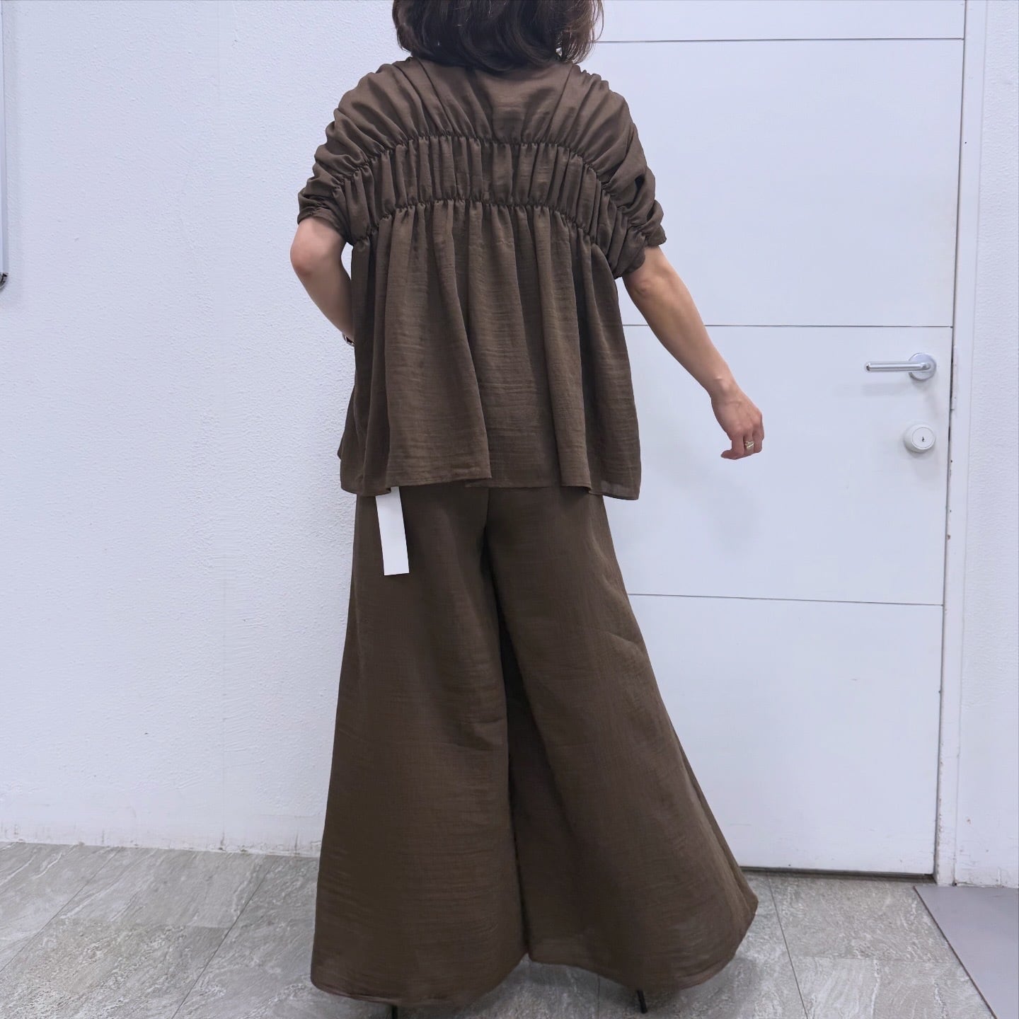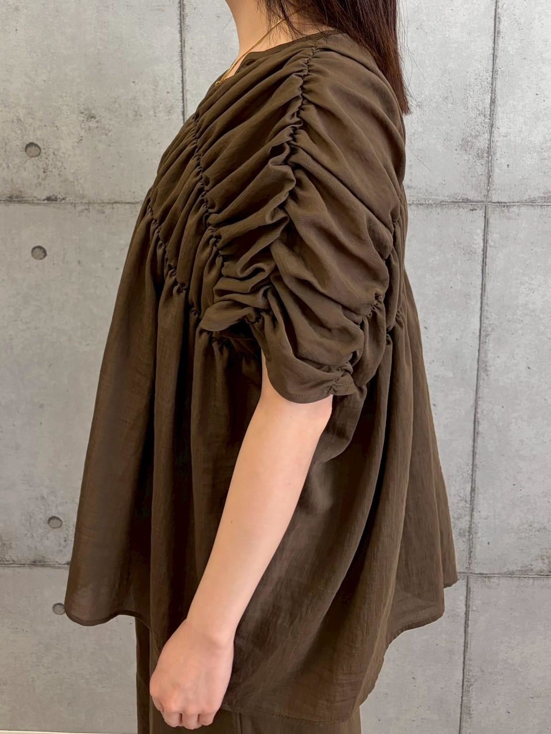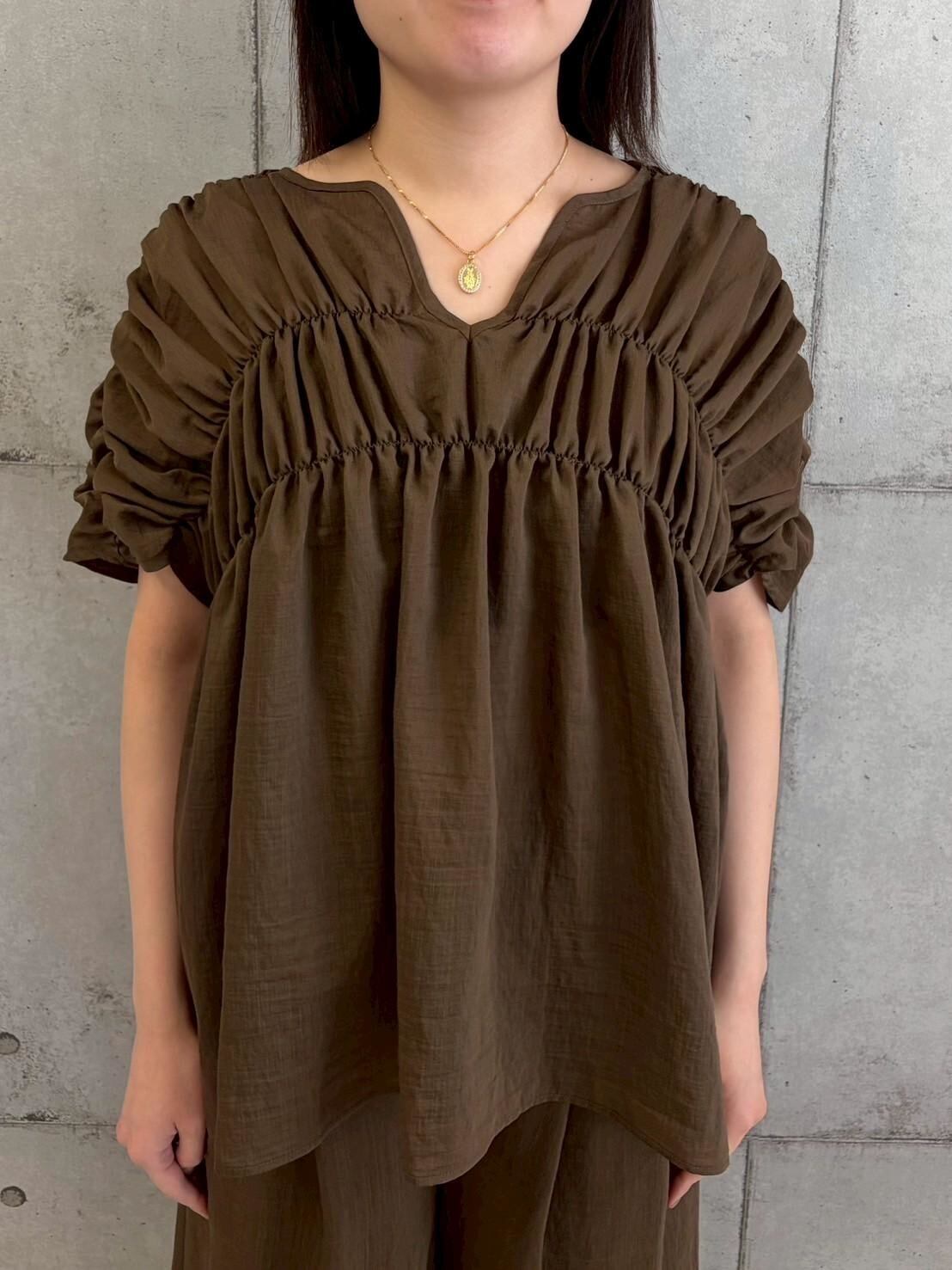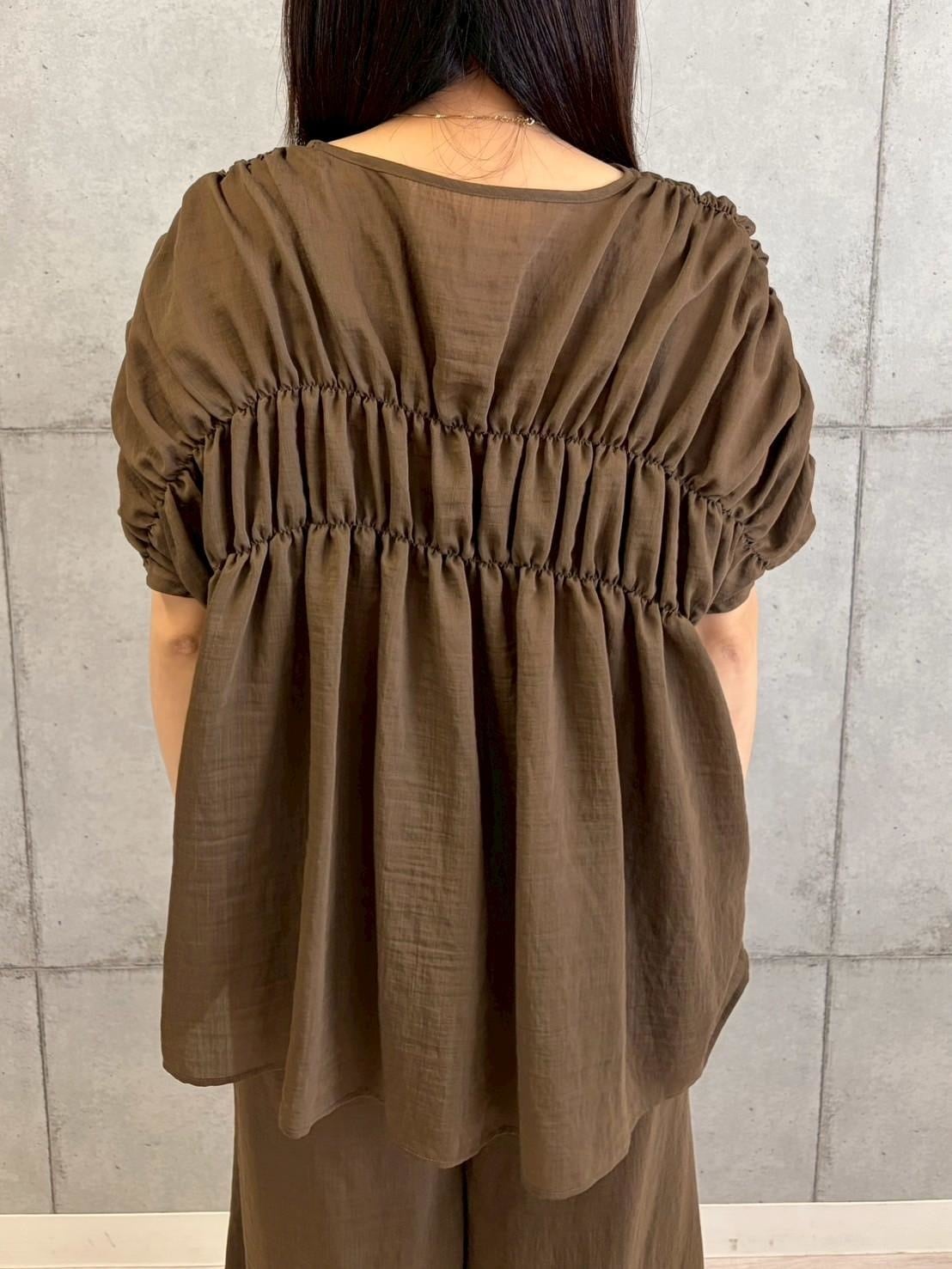 涼し気シャーリングスキッパーブラウス