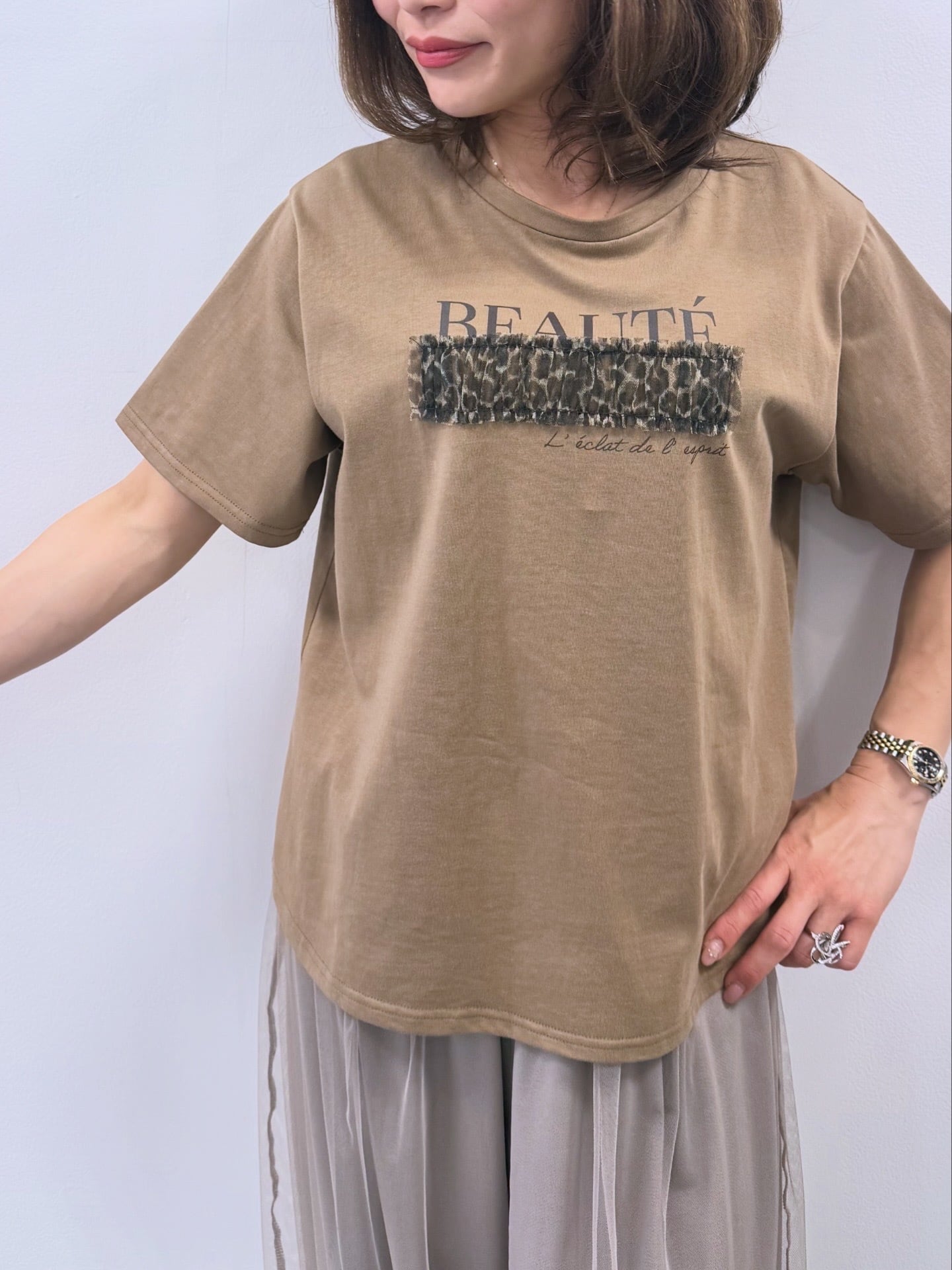 レオパードチュール重ねTシャツ