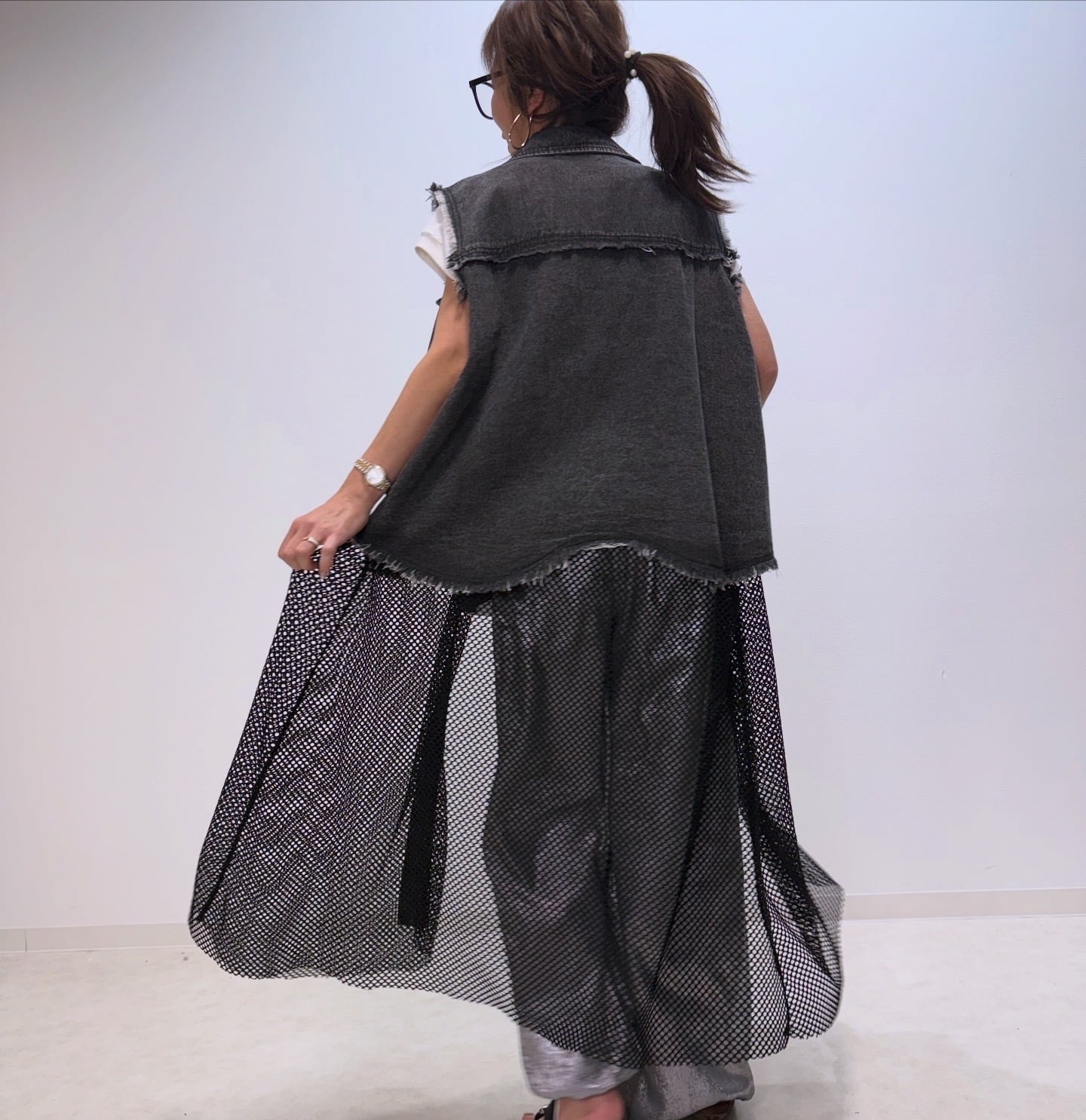 #ミカーレミカーレ #MICALLEMICALLE #2026SS #春コーデ #夏コーデ #デニムベスト #メッシュ #レイヤードスタイル #大人カジュアル #モードカジュアル #新作アイテム #予約販売 #展示会アイテム #ootd #fashion