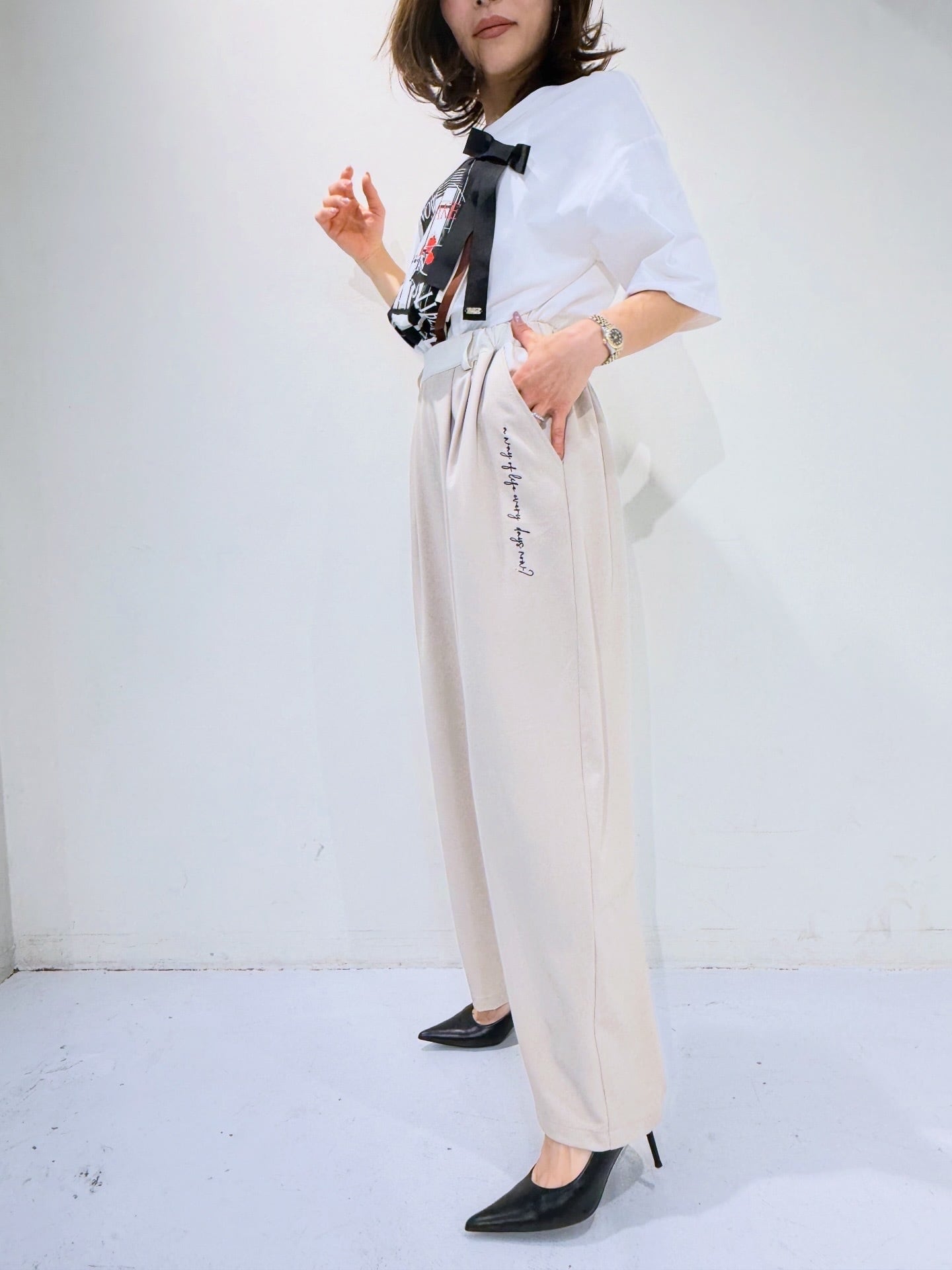 エイミーロウ Eimee Law 刺繍ツータックワイドパンツ